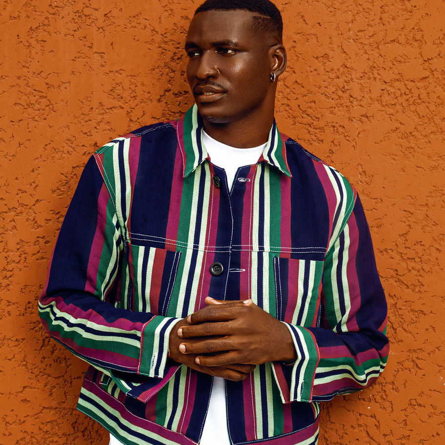 • Premium Aso-Oke jacket in traditional weave with white stripe detailing